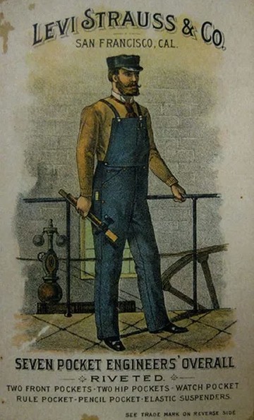 Enquanto isso, um alfaiate chamado Jacob William Davis, imigrante nascido na Letônia, em Riga, imigrou para os Estados Unidos tornando-se um alfaiate da Rua Virginia, 31, de Reno, Nevada , começou a fabricar capas de carroça o tecido áspero de algodão cru, que frequentemente comprava rolos de tecido jeans da casa de atacado Levi Strauss & Co.